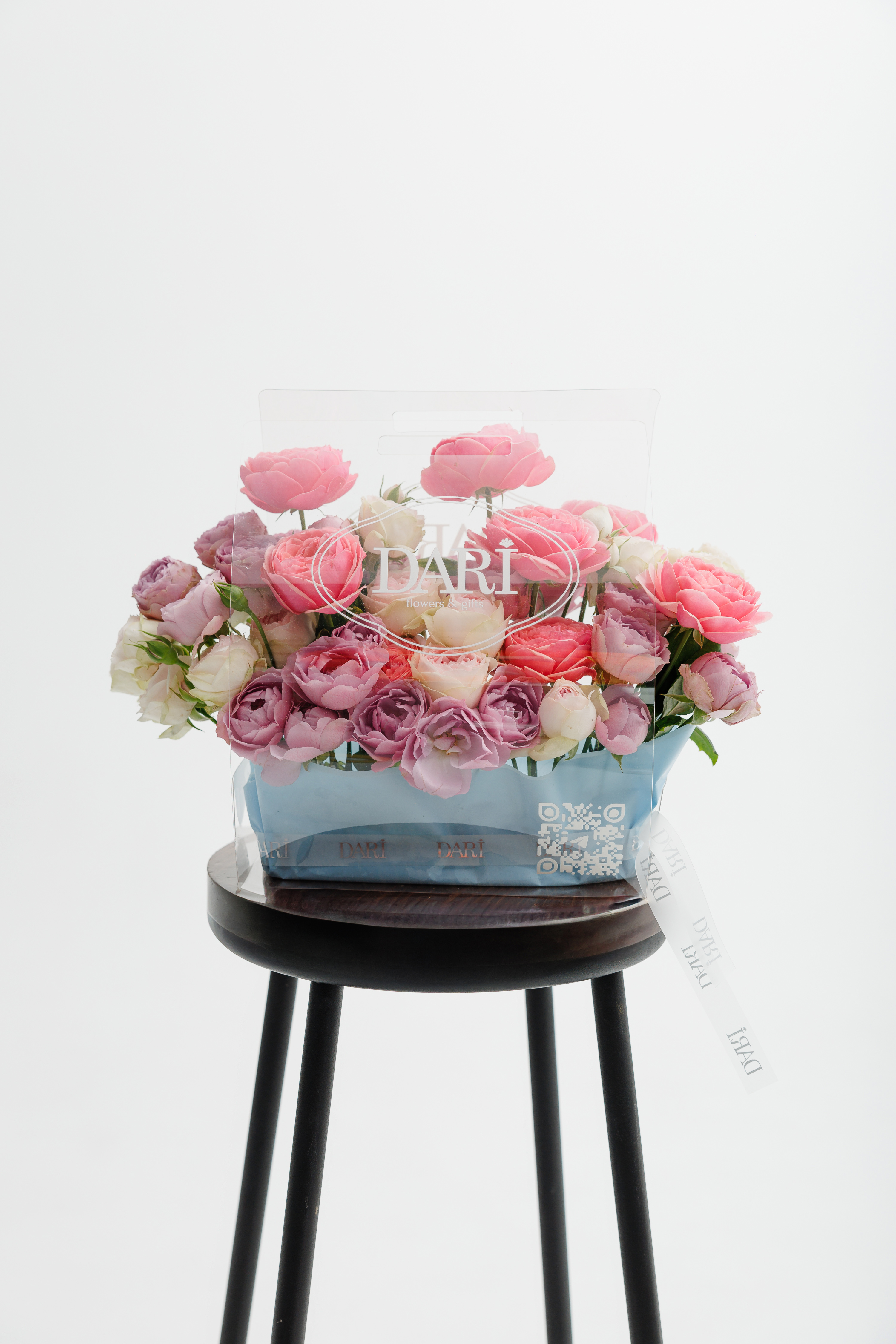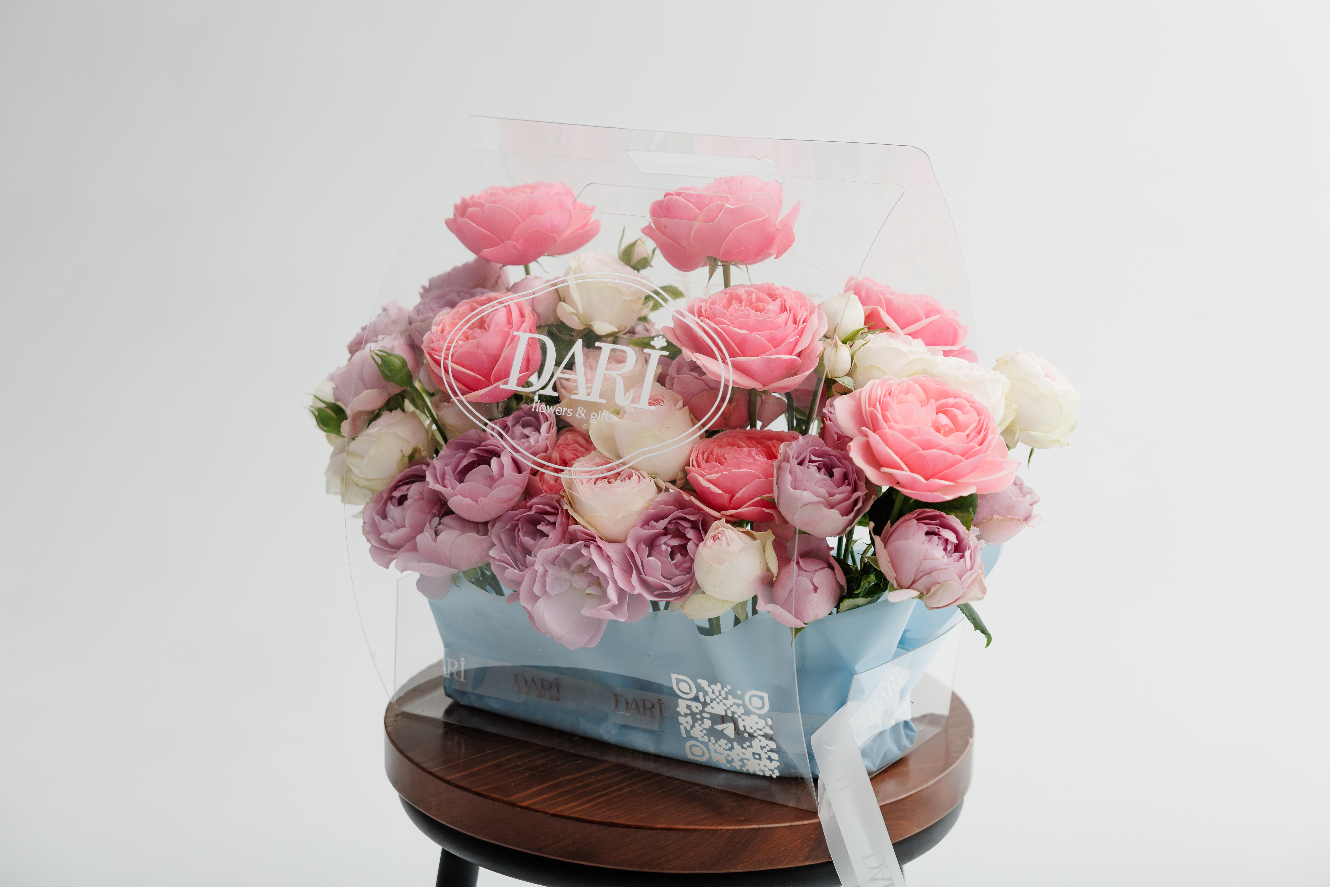 Обратите внимание, каждая композиция уникальна. Мы используем самые свежие сезонные цветы, поэтому итоговый состав может отличаться от примера на фото. Мы гарантируем сохранение общего стиля, объема и настроения вашего подарка.