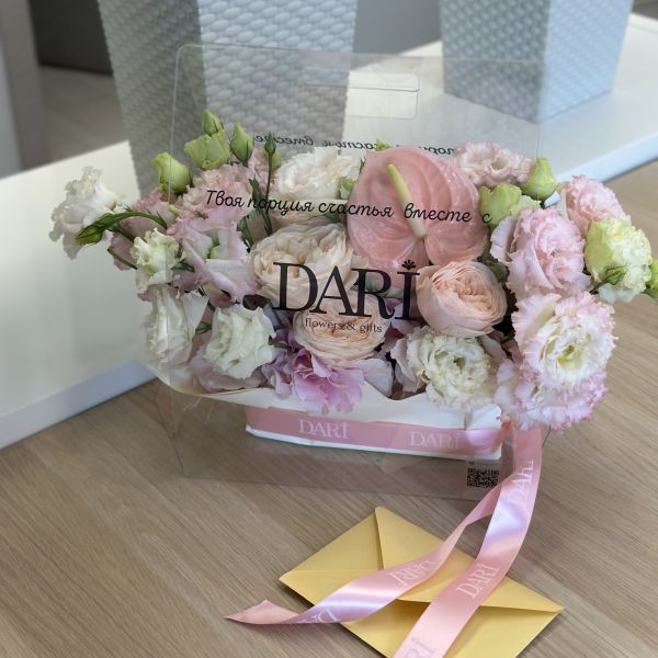 Обратите внимание, каждая композиция уникальна. Мы используем самые свежие сезонные цветы, поэтому итоговый состав может отличаться от примера на фото. Мы гарантируем сохранение общего стиля, объема и настроения вашего подарка.