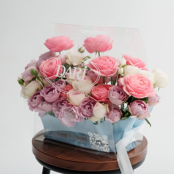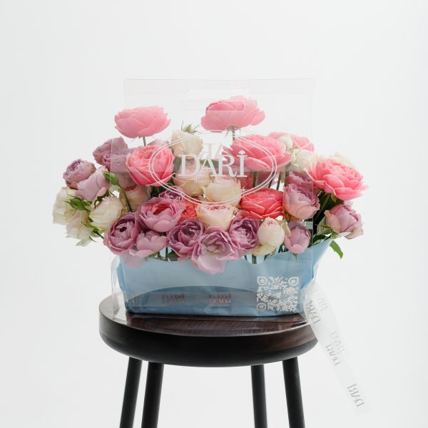 Обратите внимание, каждая композиция уникальна. Мы используем самые свежие сезонные цветы, поэтому итоговый состав может отличаться от примера на фото. Мы гарантируем сохранение общего стиля, объема и настроения вашего подарка.
