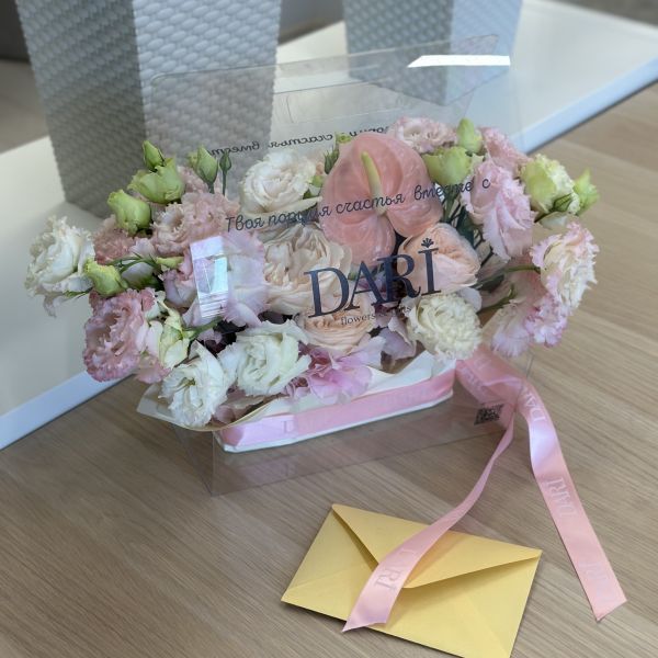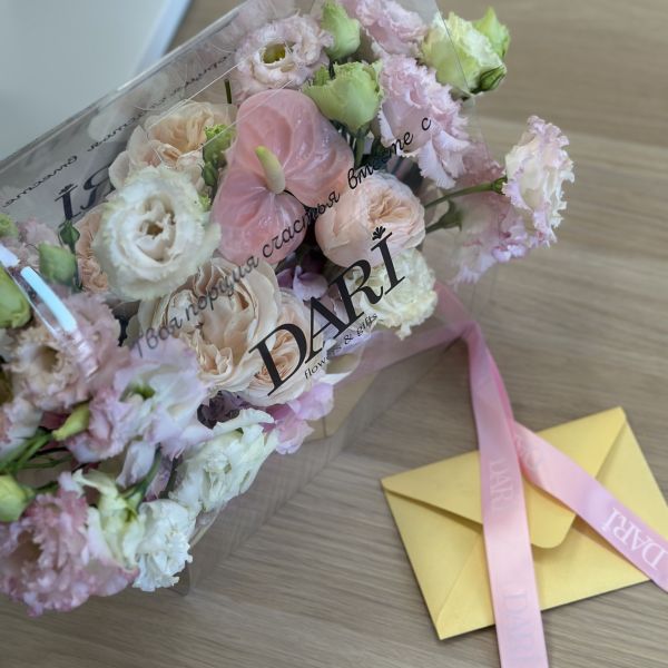 Обратите внимание, каждая композиция уникальна. Мы используем самые свежие сезонные цветы, поэтому итоговый состав может отличаться от примера на фото. Мы гарантируем сохранение общего стиля, объема и настроения вашего подарка.